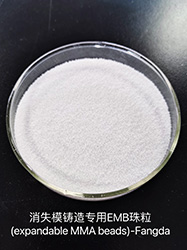 The company specializes in producing expandable MMA beads.They are mainly used in high-end cast iron,steel casting,stainless steel and other finished mold casting products.